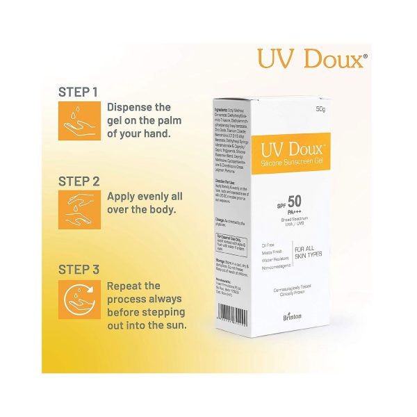 • Uv doux sunscreen gel for face and body with SPF50 PA+++