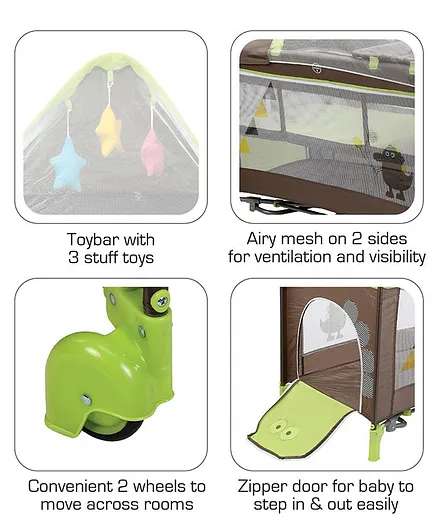 Luvlap Wonderjoy Baby Playpen – Brown Green (M.No 18530)