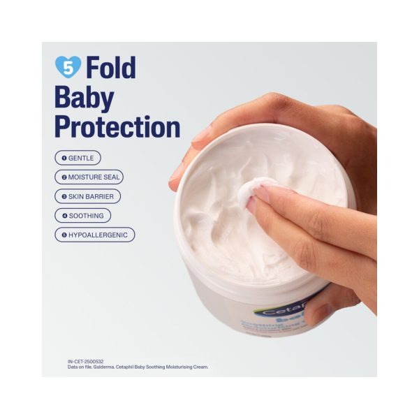 - Cetaphil Baby Soothing Moisturising Cream is a hypoallergenic formula that hydrates, softens, and nourishes the infant’s skin.