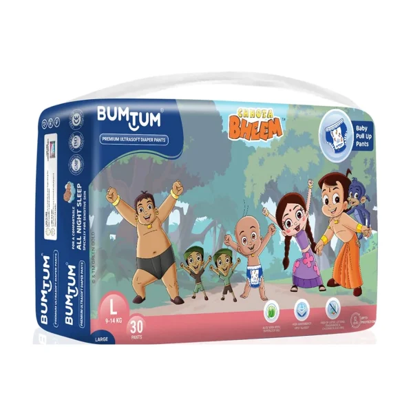 Bumtum Chota Bheem Ultrasoft Baby Diaper Pants Large 9 to 14 Kg – 30 Diapers