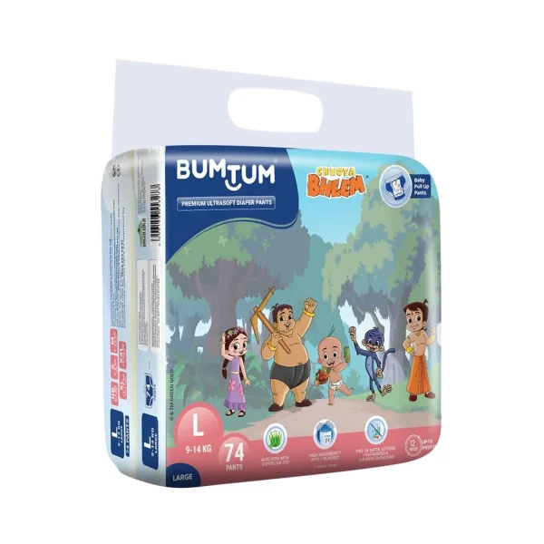 Bumtum Chota Bheem Ultrasoft Baby Diaper Pants Large 9 to 14 Kg – 74 Diapers