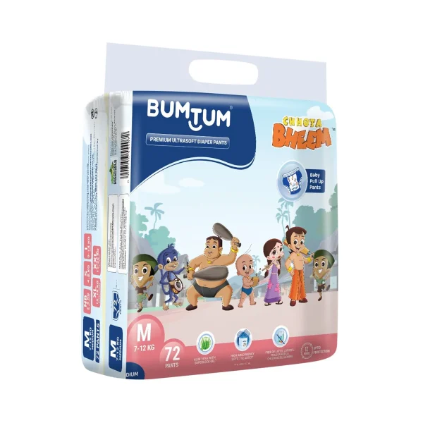 Bumtum Chota Bheem Ultrasoft Baby Diaper Pants Medium 7 to 12 Kg – 72 Diapers