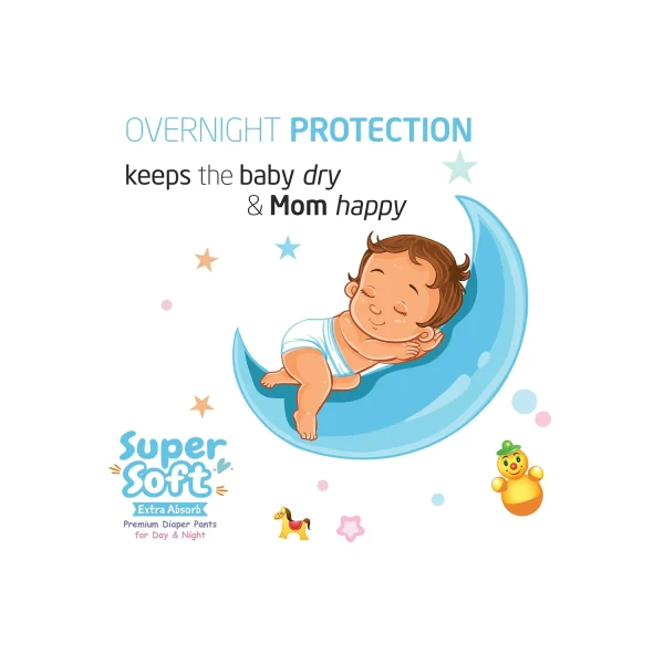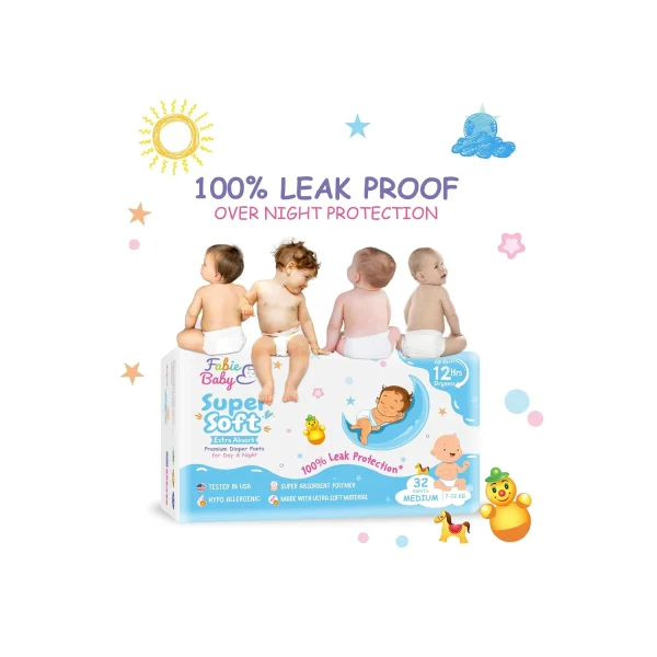 Fabie Baby Diaper Pant is designed to provide overnight protection and is capable of handling a higher volume of urine.