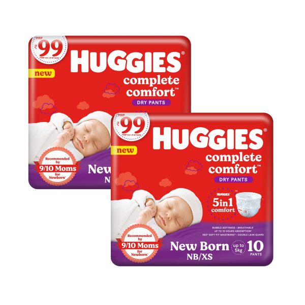 Huggies Complete Comfort Dry Pants New Born NB/XS (up to 5 kg) 10 Diapers – (Pack of 2)