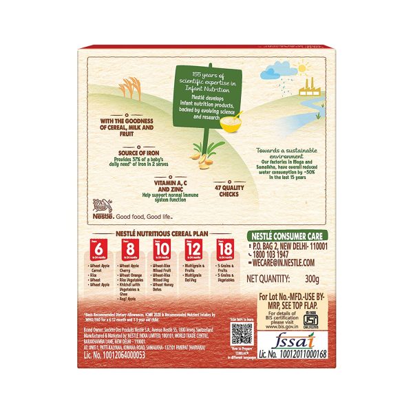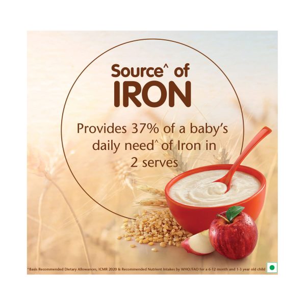 Baby cereal rich in iron for babies from 6 to 24 months. The numerous nutritious constituents in wheat and its chewy texture enhances the taste buds of the baby with the goodness of nutrients.