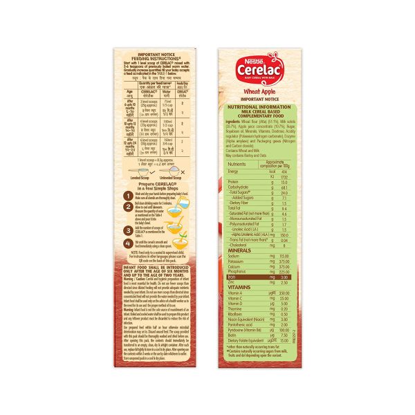 • Nestle Cerelac comes with the goodness of healthy ingredients like cereal (wheat),milk and fruit(apple).