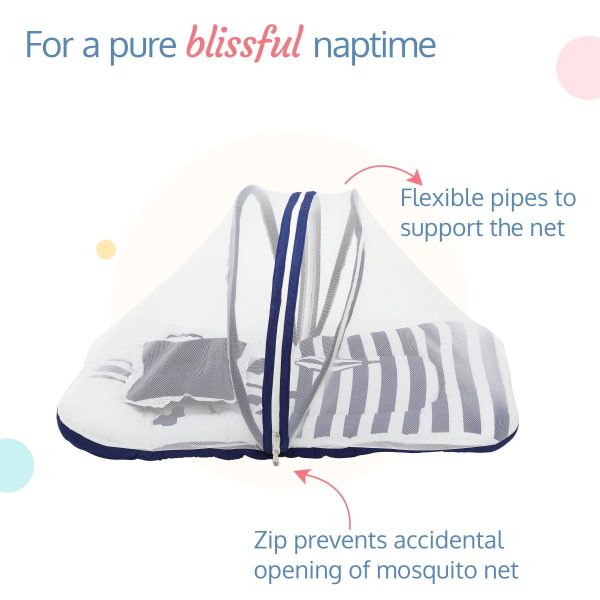 LuvLap baby nest gives protection for babies; it is useful for babies during sleeping time, and the mosquito net protects babies from getting bit by dangerous insects.