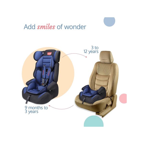 LuvLap comfy car seats are used to provide comfort and are suitable for 3 age groups of infants: Group 1 (9 months to 3 years), Group 2 (3 years to 6 years), and Group 3 (6 years to 12 years).
