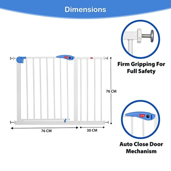 LuvLap indoor baby safety gate with auto close ensures your baby safety from dangers which keeps them from entering the unsafe place and gives peace to your mind. Ideal for toddlers.