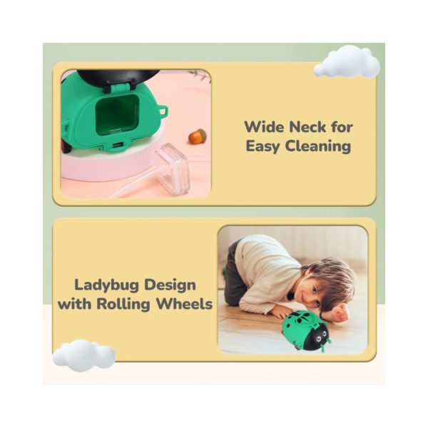 - The sipper bottle encourages the kids to drink more water or drink due to its ladybug design with rolling wheels.