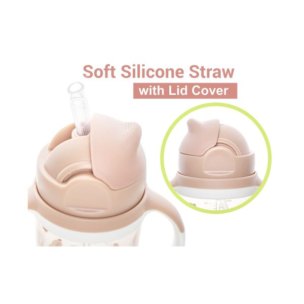 - Baby sipper with soft silicone straw and lid cover for babies.