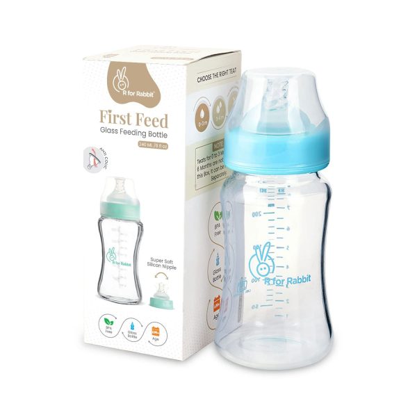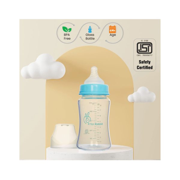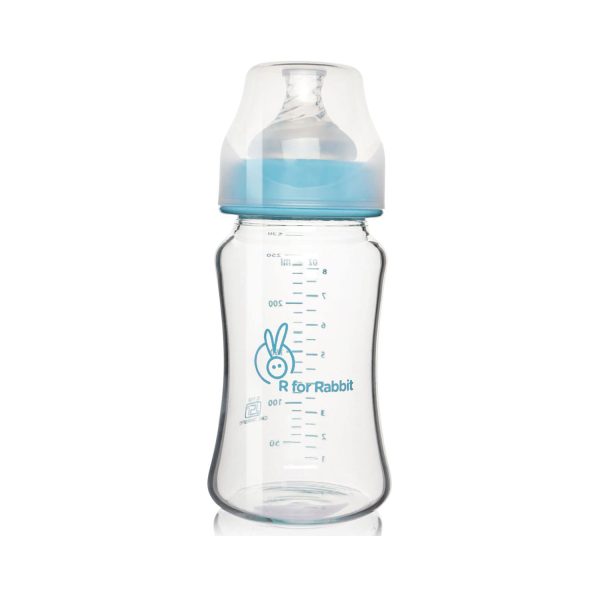 R for Rabbit First Feed Baby Feeding Glass Bottle for 0+ Months Babies 240ml (Lake Blue)
