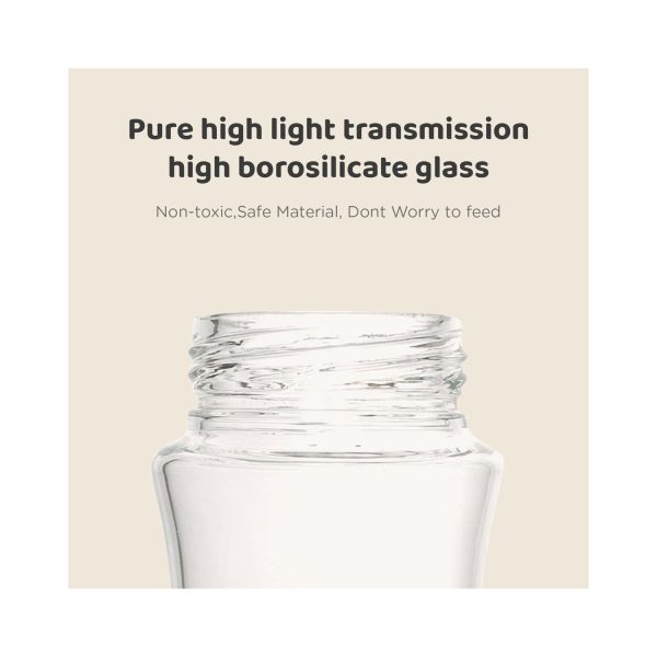 - The feeding bottle is made up of high-quality glass material and a 100% BPA-free silicone nipple.