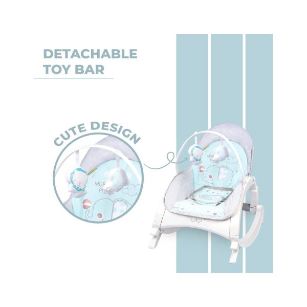 Rabbit Rock n Play Rocker has a great time for your baby by reclining it to their comfort. Its soothing music, vibrations, and detachable toy bar enable them to develop visual, motor, and cognitive skills while they’re having a blast.