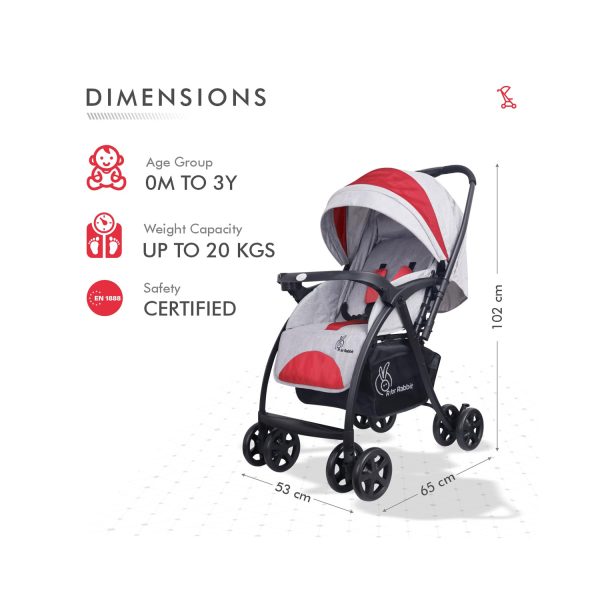 R for Rabbit Sugar Pop Baby Stroller from 0 – 3 Years (Red Grey)