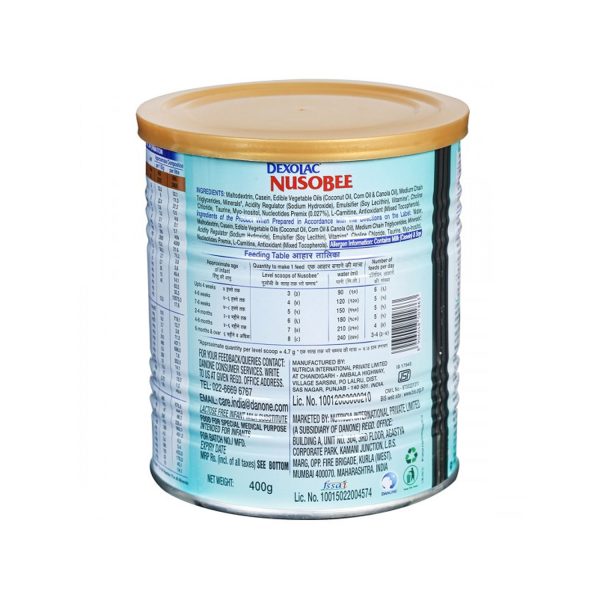 Dexolac nusobee casein infant formula is a lactose and sucrose-free formula designed to fulfill the nutrient requirements of babies with lactose intolerance; suitable for babies up to 24 months of age.