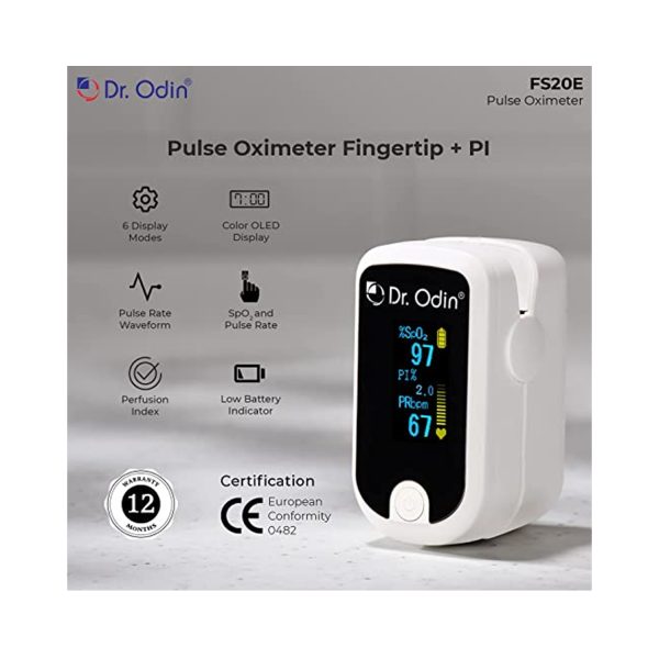 Dr.Odin’s Pulse oximeter + PI(FS -20E) is a fast, easy, and noninvasive way to check your oxygen saturation levels and detect low levels before other symptoms are present.