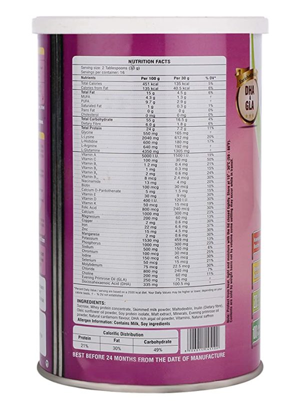 Pro PL powder is complete nutrition in pregnancy and lactation, has 3 unique advantages, it is enriched with Protein, DHA (Docosahexaenoic Acid), GLA (Gama-Linoleic acid), and 28 essential Vitamins and Minerals. It helps in managing weight gain and promotes healthy weight of Mother and child.