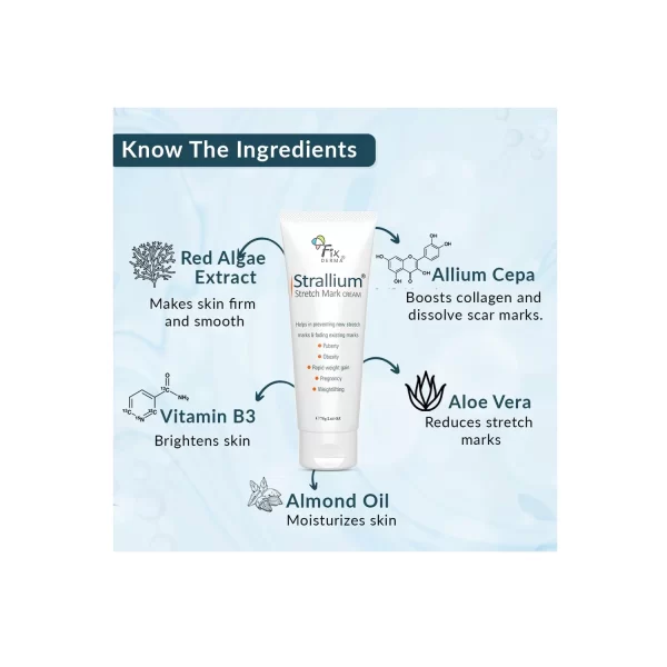 - Fixderma Strallium Cream can help reduce the visibility of stretch marks.