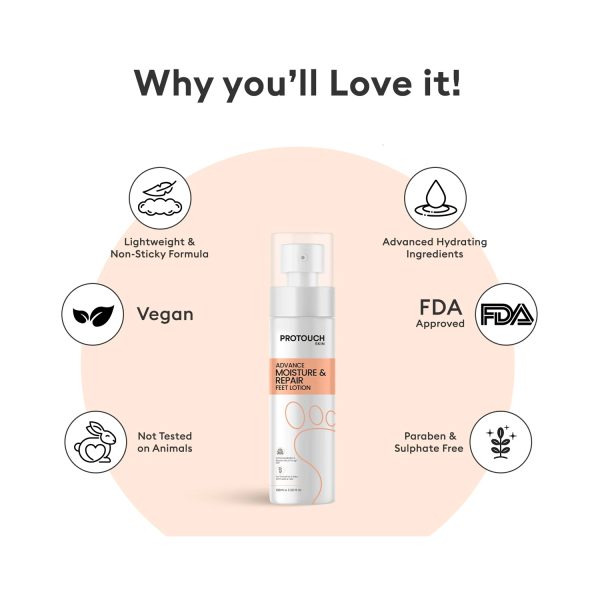 Protouch feet repair lotion is a specially formulated lotion designed to deeply hydrate, repair, and nourish dry feet. It works by penetrating the skin to lock in moisture, promoting skin regeneration, and soothing skin for smoother and softer feet.