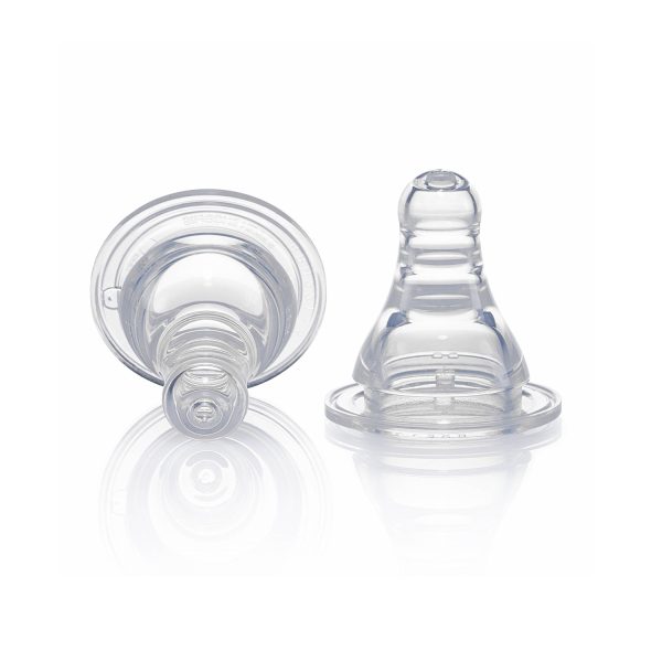 If your baby is comfortable with one certain nipple and he / she refuses to change, rotate the usage of two size nipples about 2 – 3 weeks and gradually increase the usage of new size.
